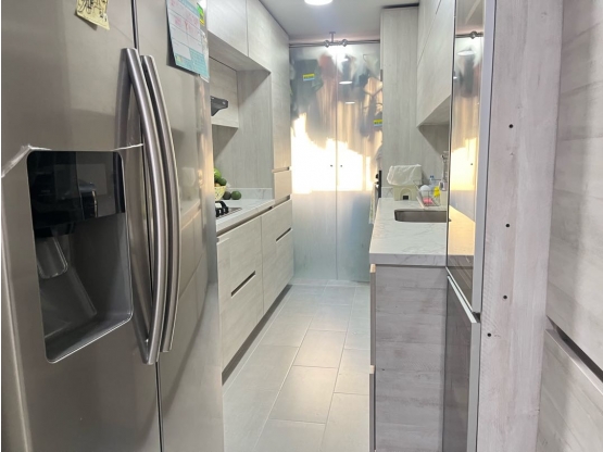 Tiene una área construida de 98 m2, distribuidos en 3 habitaciones cada una con closet, un estudio y un cuarto de entretenimiento, sala, comedor, una moderna cocina, balcón, y dos baños. Parqueadero y un cuarto útili bastante amplio, con ventana hacia el exterior, el cual se le puede utilizar como oficina.